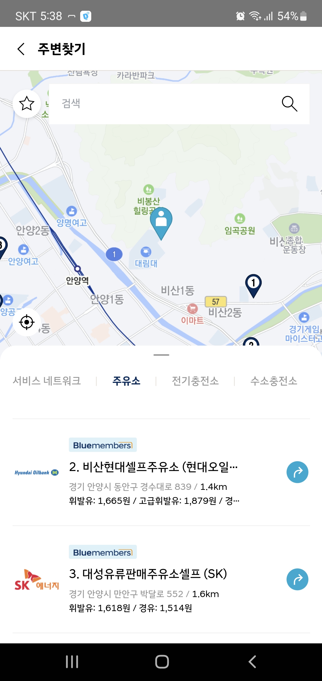 주유소이름 위에 Bluemembers라는 글자가 붙어있으면 블루멤버스포인트로 주유가 가능한 주유소이다.