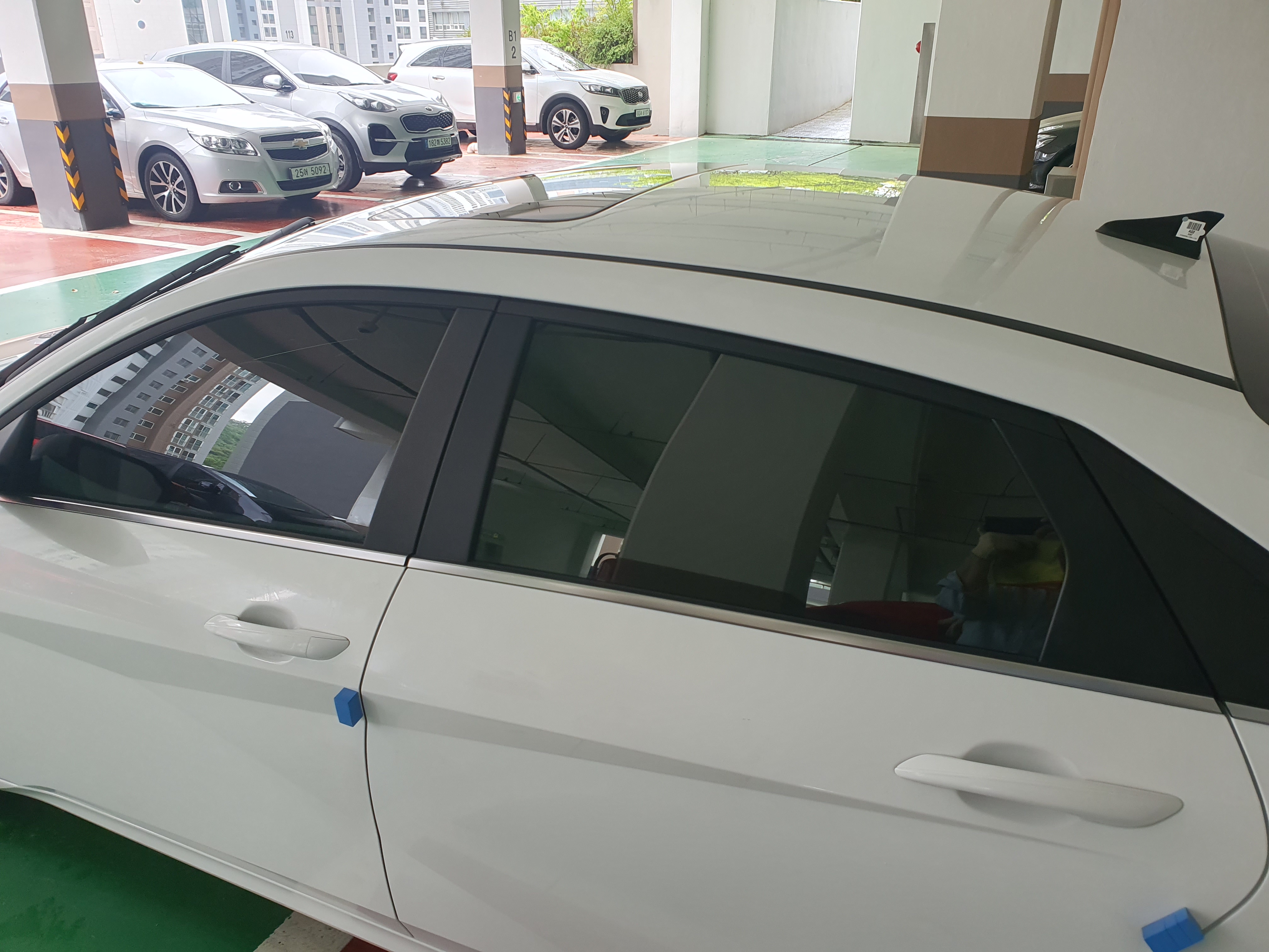 세차를 마친 승용차. 깨끗하니 내 마음도 시원해졌다.