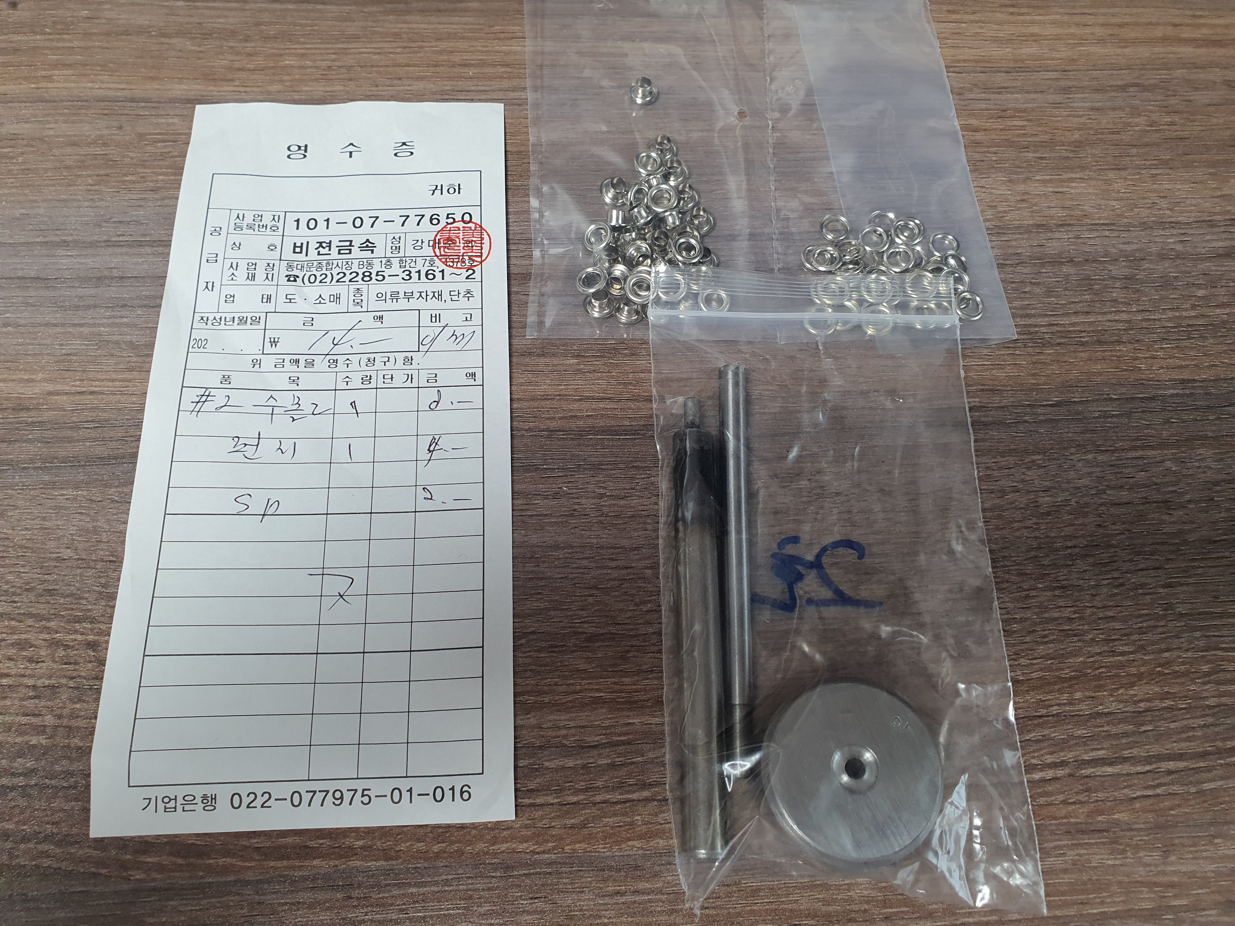 원단에 구멍을 뚫고 자석후크를 걸 생각으로 2호아일렛을 구매했다.